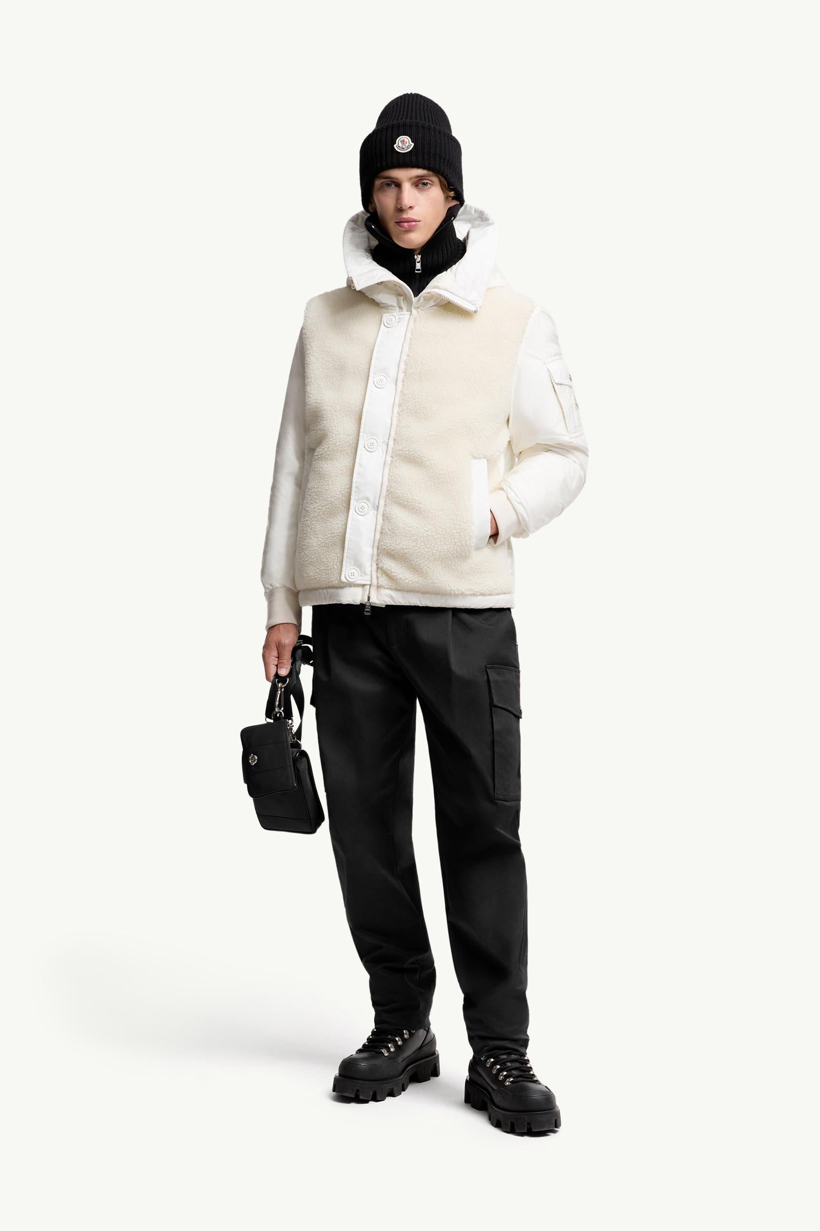 Technical protection and plush texture come together in the Auvurgne down jacket. The short puffer is crafted from nylon technique, a light and water-repellent nylon fabric. In an unexpected twist, the front is softened by teddy fleece. The warmer is finished with a practical hood.