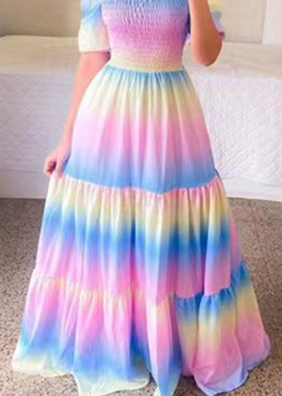 Beautiful Purple Off The Shoulder Wrinkled Print Patchwork Cotton Dress Summer