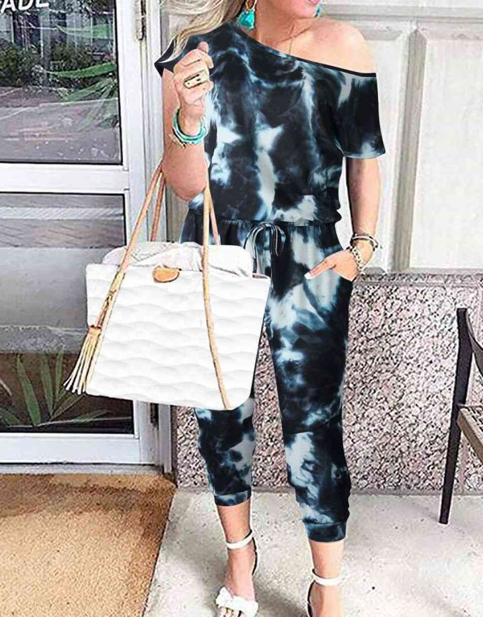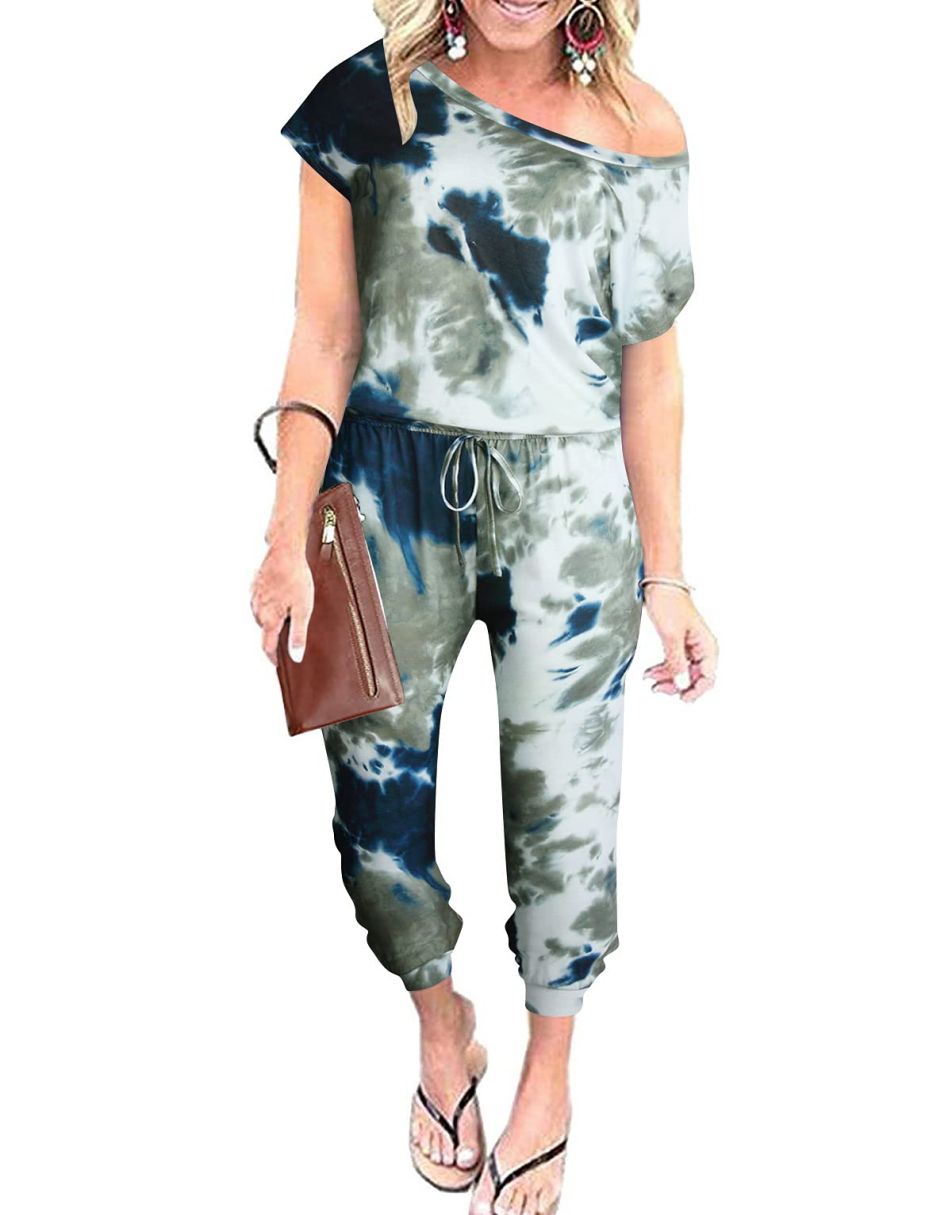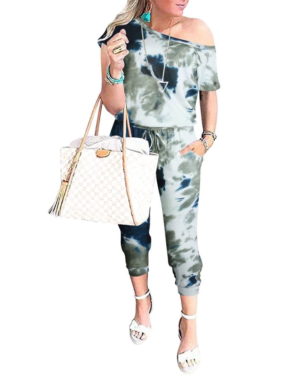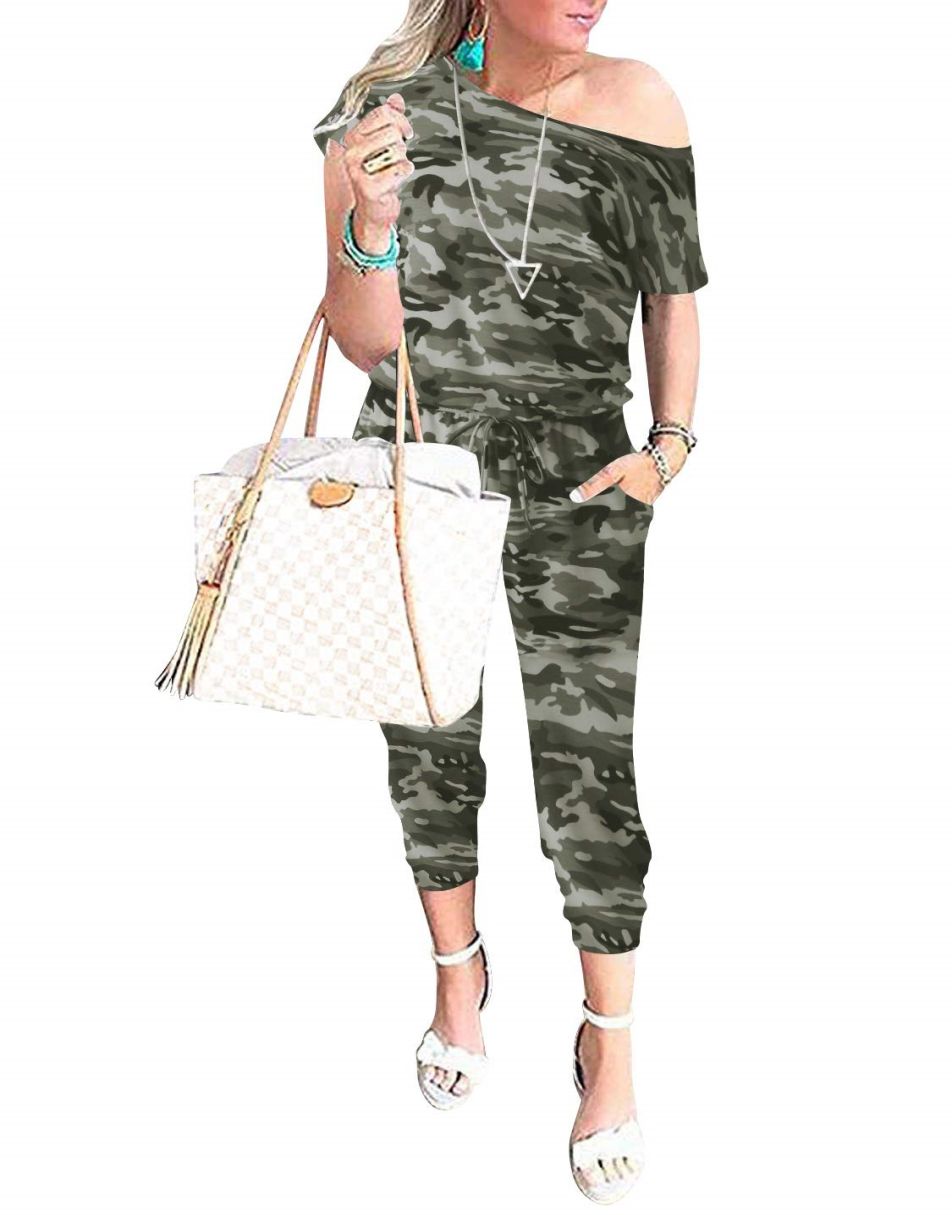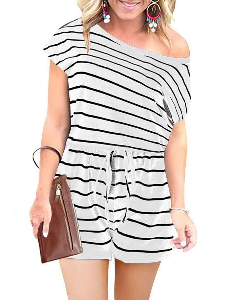 ANRABESS Casual Off Shoulder Elastic Waist Stretchy Long Romper Jumpsuit