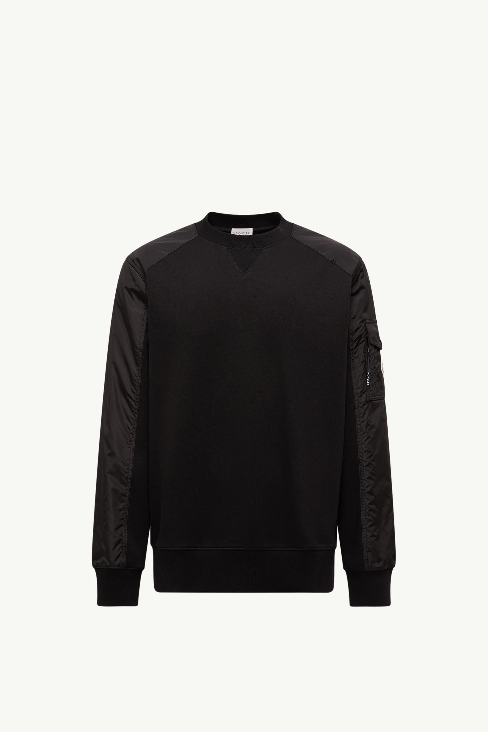 Experimenting with contrasts, this sweatshirt pairs soft cotton fleece with shiny nylon details. Subtly nodding to the brand's heritage, a sleeve pocket adds the finishing touch. Pair with matching track pants for a relaxed total look.