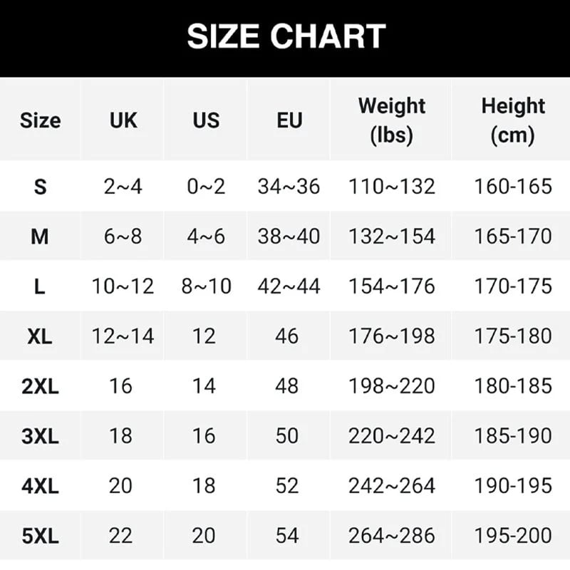 | 4XL | 54 | 48 | 58 | 58 | 108cm | 124cm | 82cm |