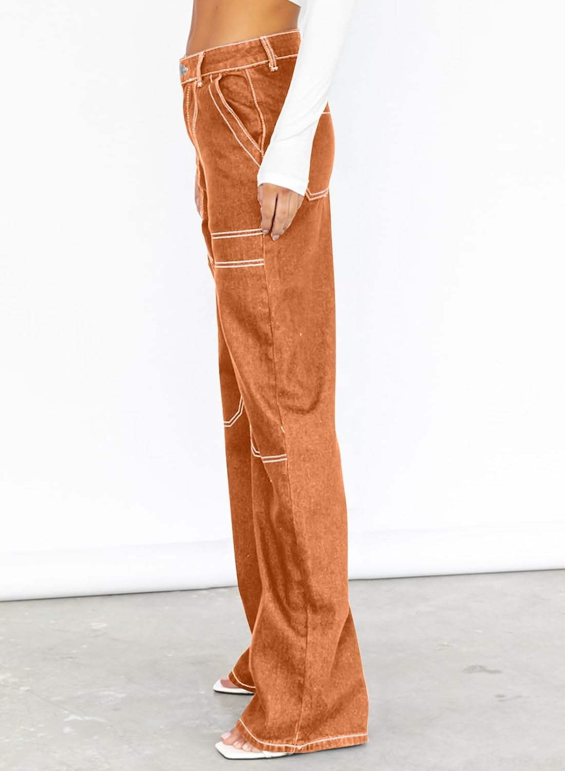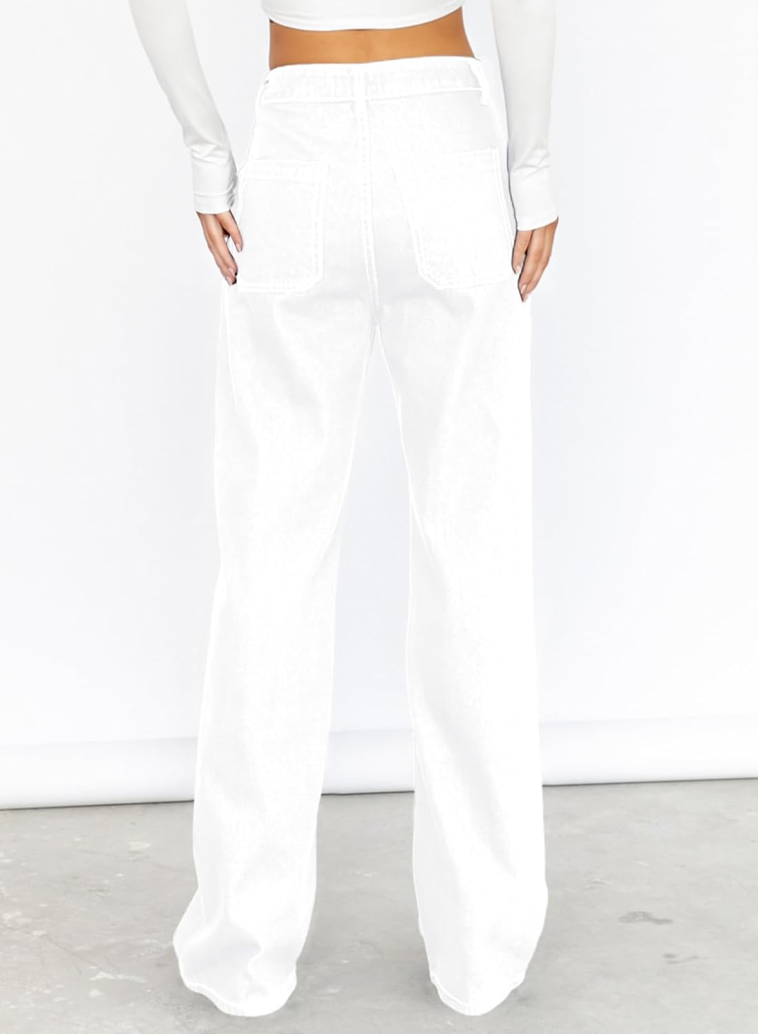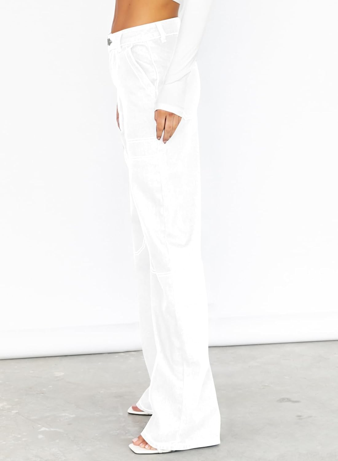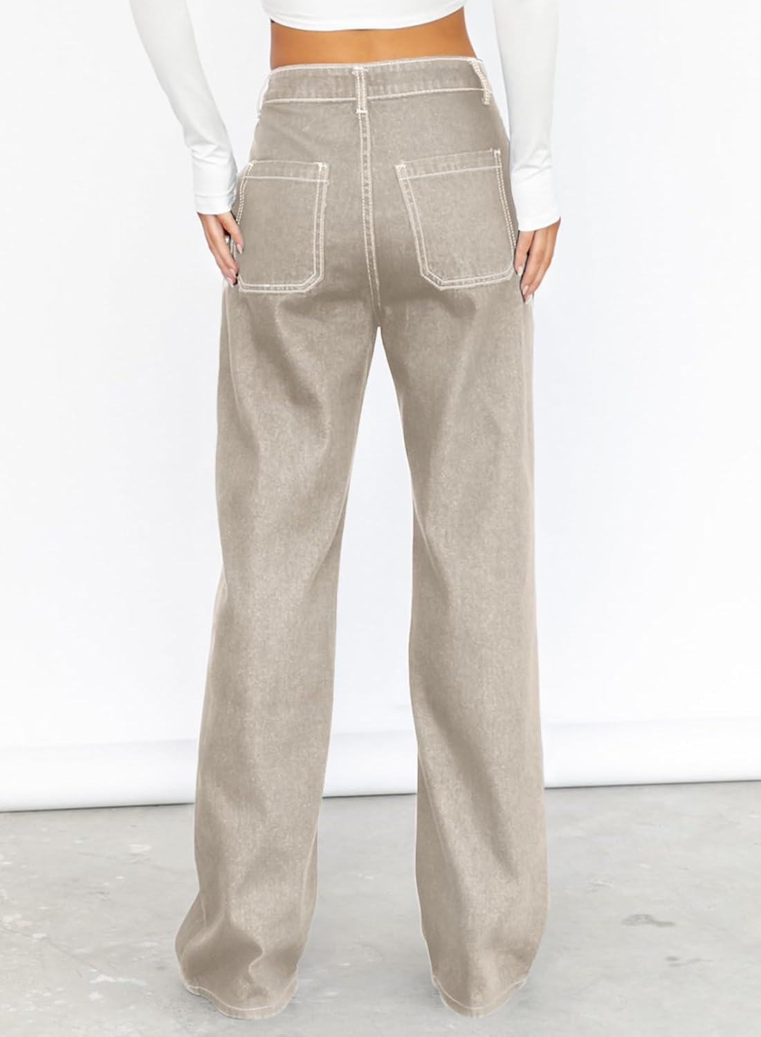 Dokotoo Stretch Wide Leg Denim Pants Mid Waist Cargo Jeans with Pockets