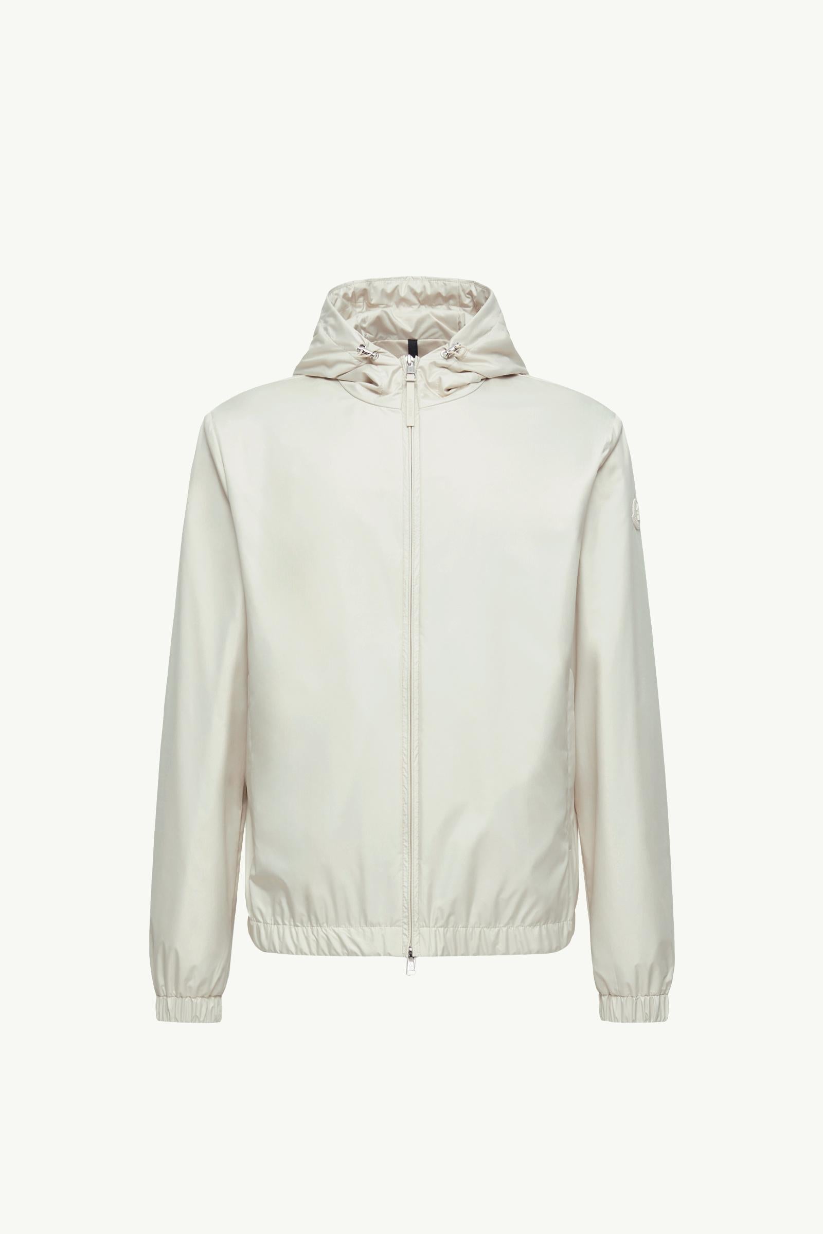 The Domene windbreaker enhances a casual design with protective fabrics. The hooded jacket is crafted from AirSoft, a durable material notable for its water-repellent finish and light weight. A leather logo patch completes the piece.