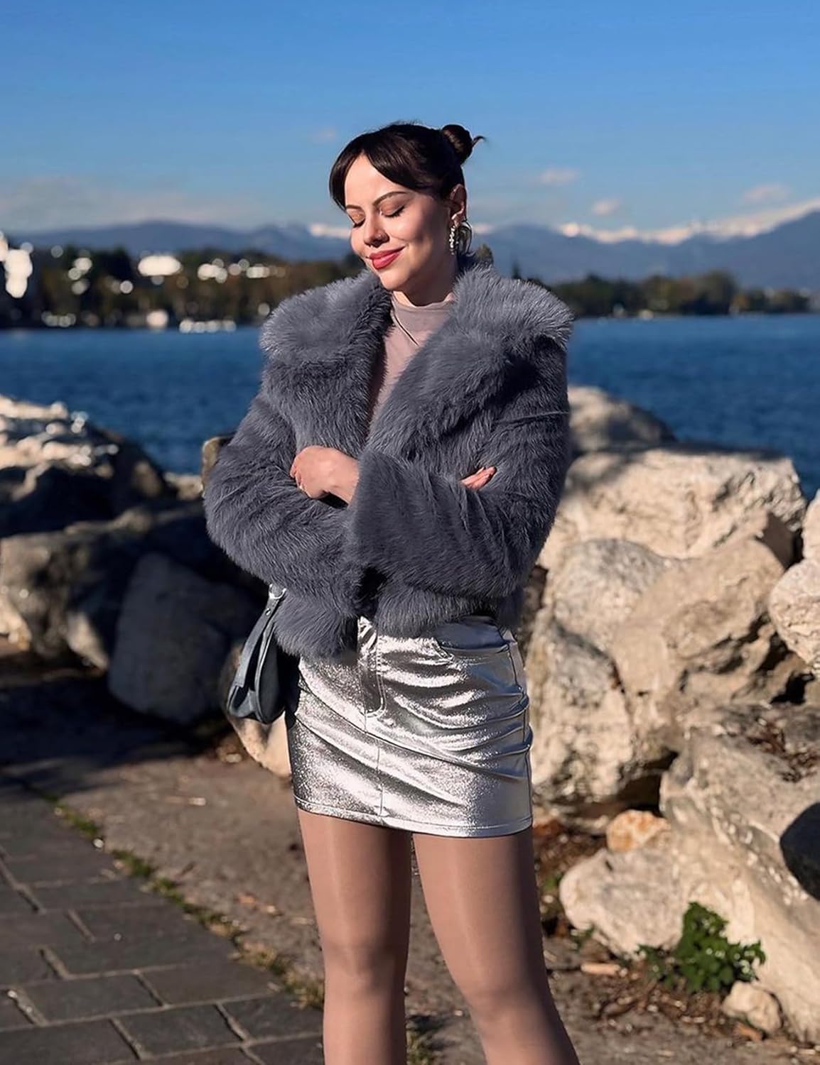 Fuzzy winter coats pair greatly with jeans, evening dresses, knit dresses, leather skirts for a casual and chic look.