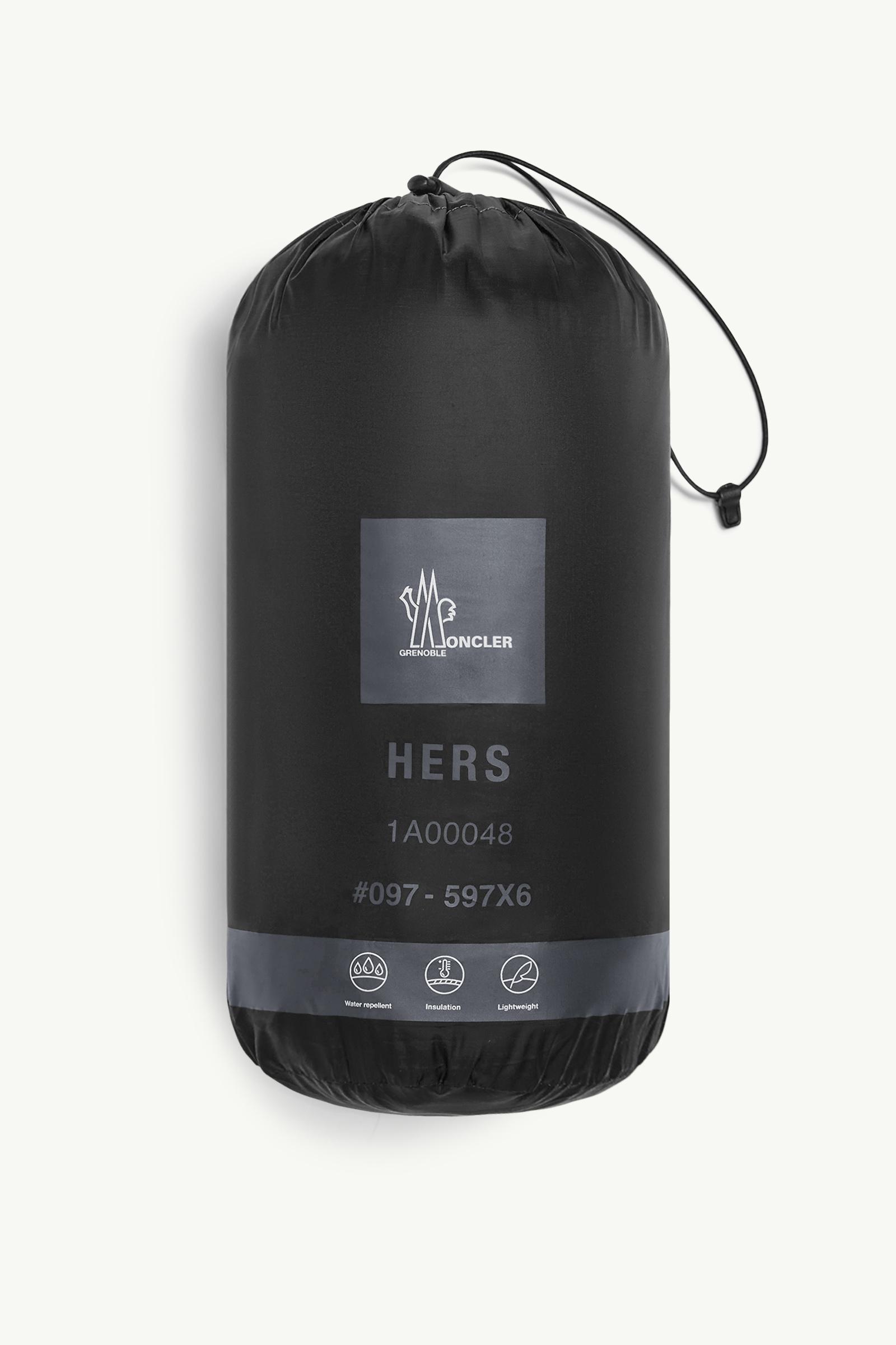 Designed for the great outdoors, the Hers down jacket is crafted from ripstop - a highly resistant, lightweight fabric that is down-proof and water-repellent. Layering is key: when the temperatures drop, the light outerwear becomes protective and versatile with a mid-layer underneath. The short puffer is packable and finished with a range of technical details.