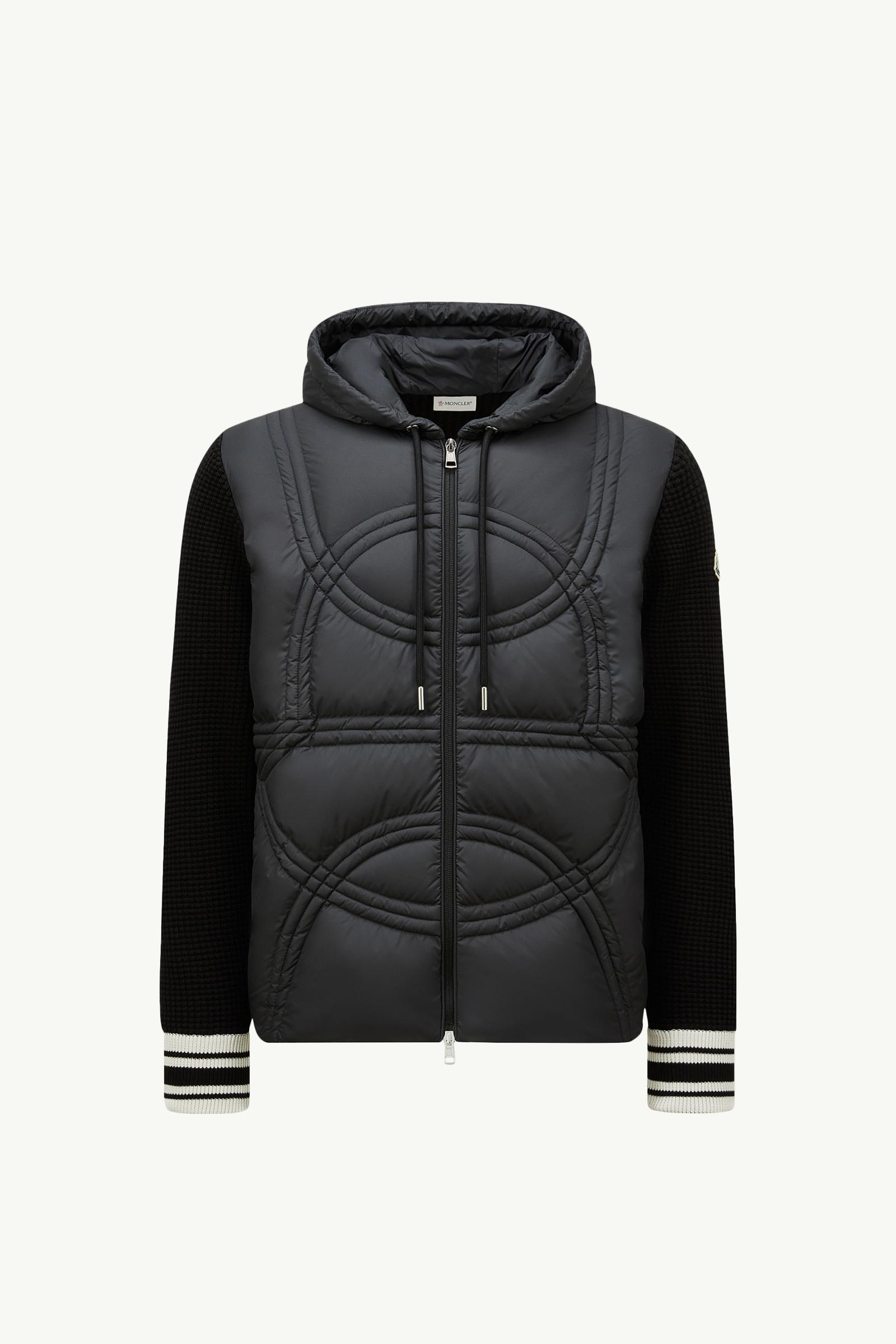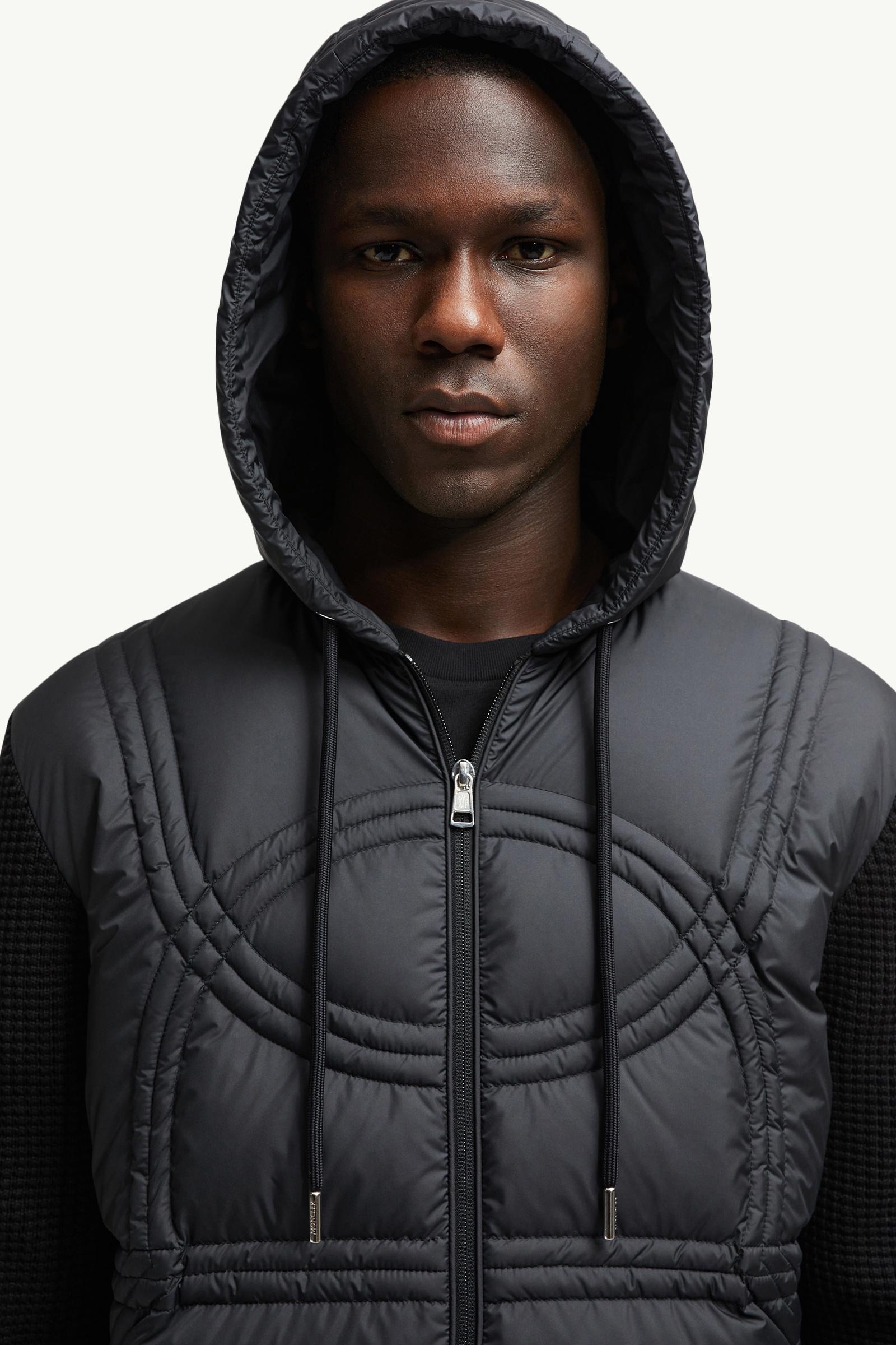 Recalling the curved shapes seen on the basketball course, this cotton hoodie features a quilted geometric logo pattern. The mid-weight cardigan is enhanced with a down-filled front, allowing the piece to double as outerwear in milder weather.