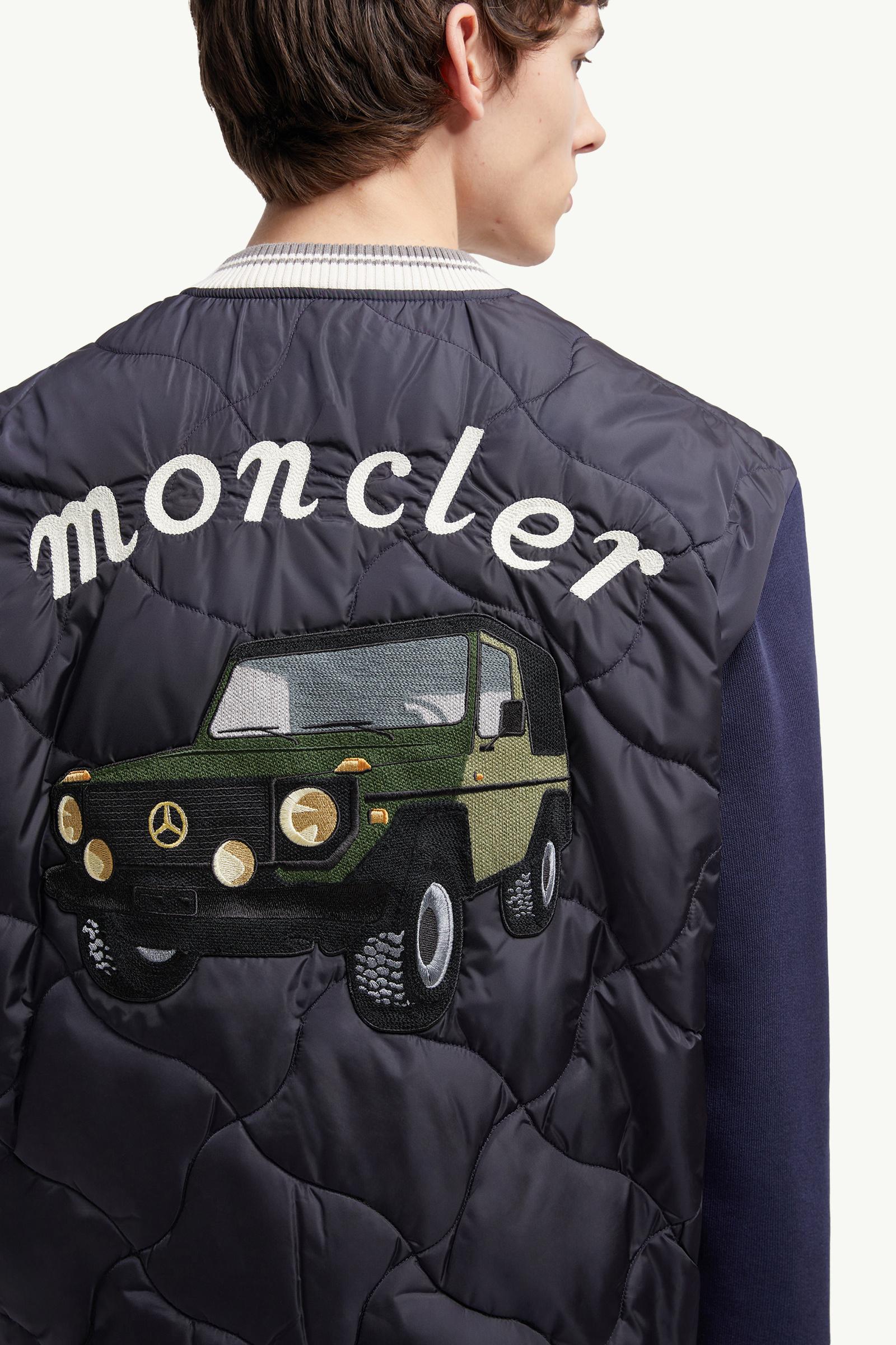 A dialogue between the brands, this jacket channels the MC x Mercedes-Benz by NIGO's collaborative spirit. Creating a connection, the cotton design is enhanced with a padded nylon back featuring an embroidered car. The MC Genius design is completed by logo accents and a knit trim, adding a collegiate aesthetic.