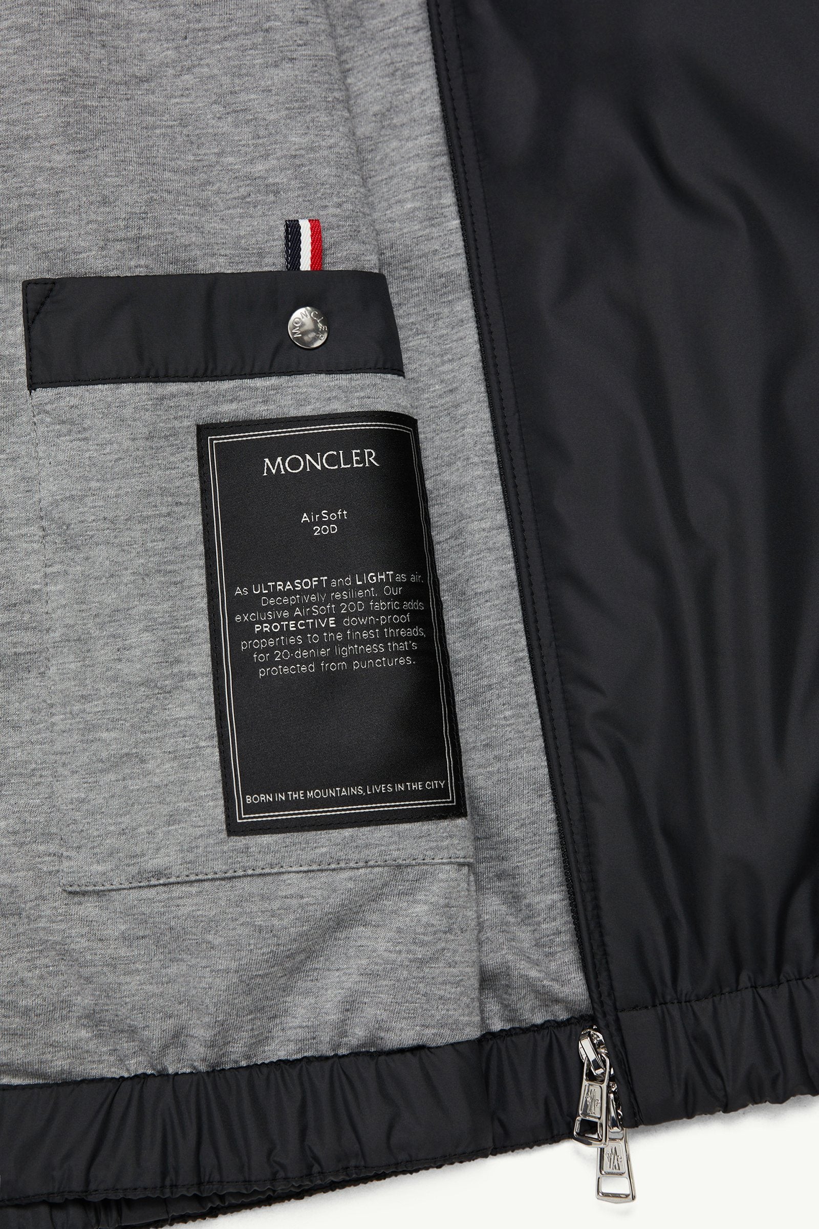 Elegant lines are paired with technical fabrics in the Meidassa jacket, crafted from Airsoft - a lightweight nylon fabric notable for its durability and water-repellency. Jersey lining enhances comfort, while leather details provide the finishing touch.