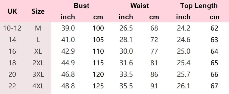 | Sizes | FR | GB | IT | DE | BUST | Waist | Hips |