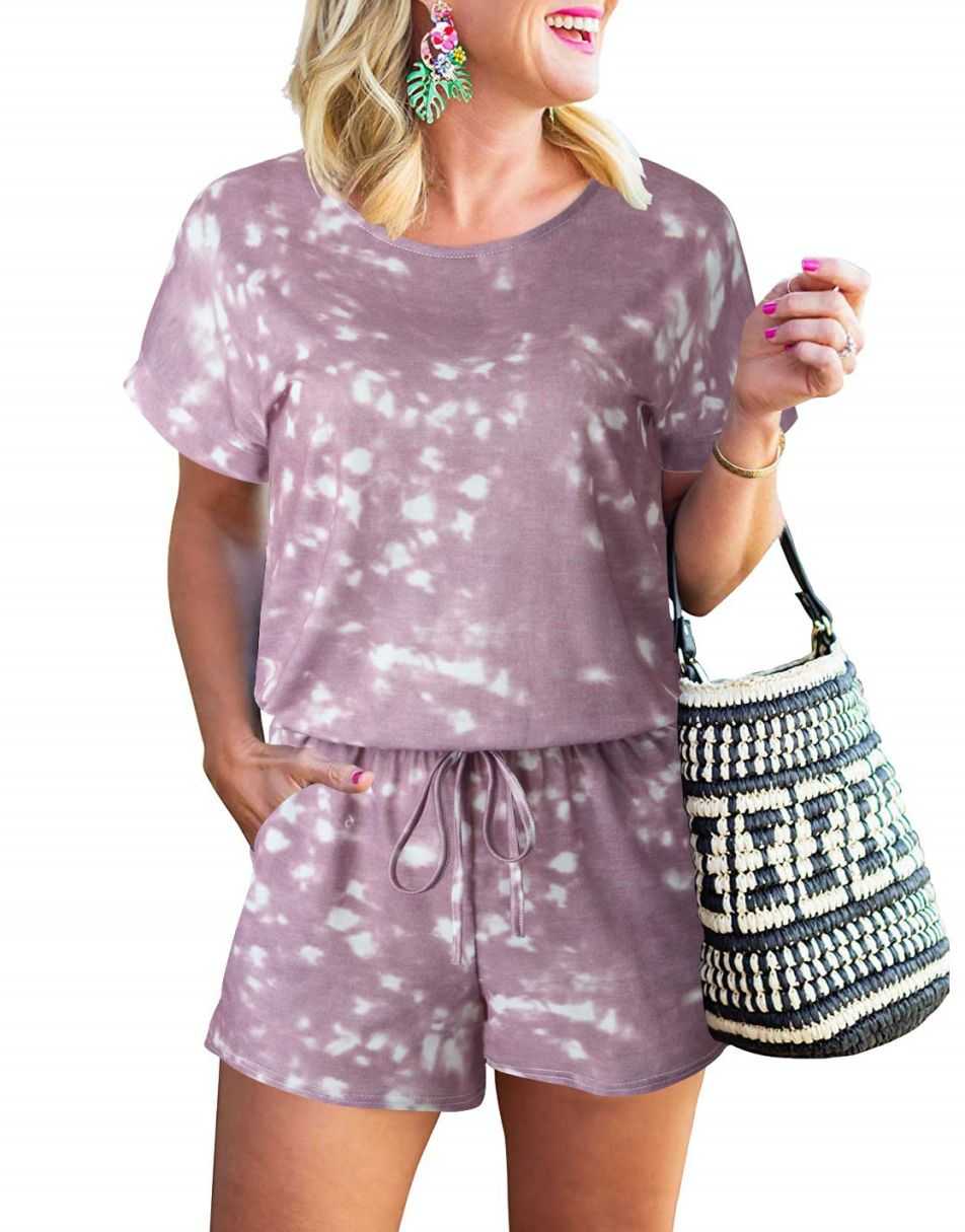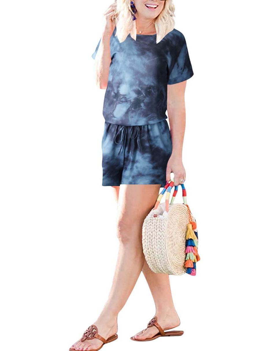 ANRABESS Short Sleeve Striped Jumpsuit with Pockets Short Pant Rompers Pajamas Loungewear