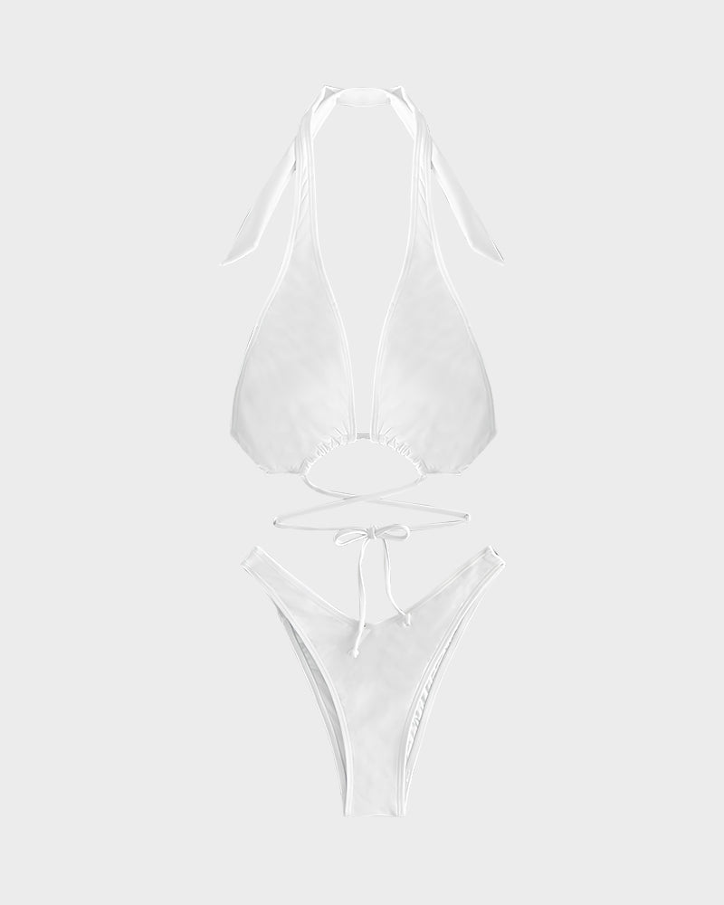 The halter neck provides support and allows for adjustable fit, accentuating your shoulders and creating a flattering silhouette.Eye-Catching Strappy Details
