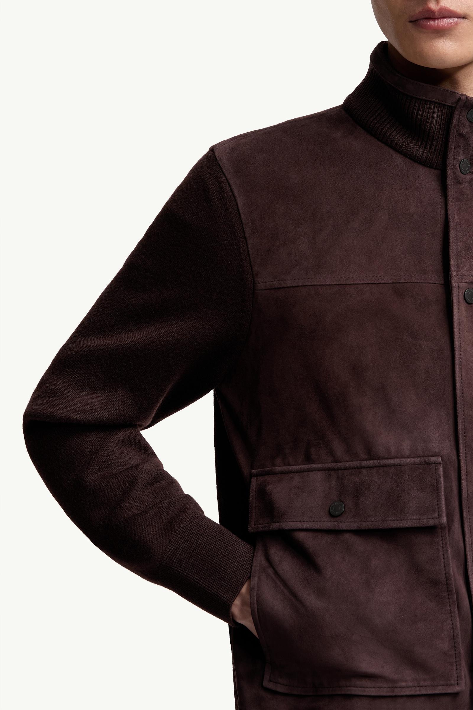 The timeless cardigan is revisited in this lightweight knit for men. Crafted from ultra-fine wool, the high neck style is enhanced with a soft suede front. Spacious patch pockets imbue the style with practicality.